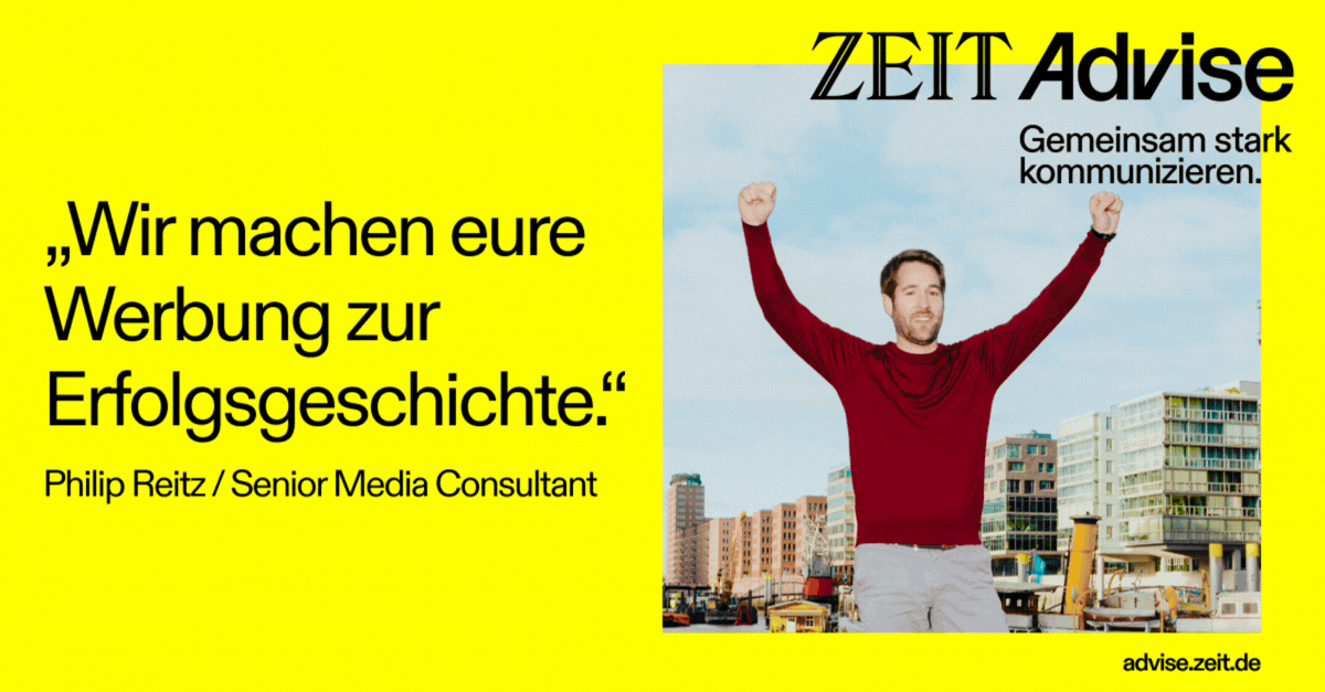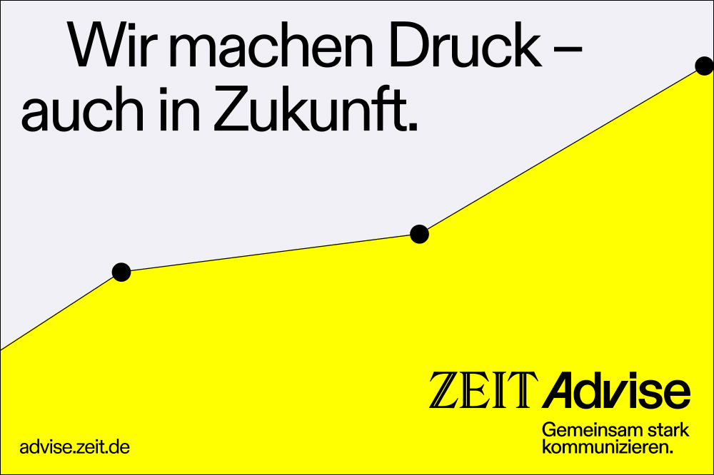 Willkommen bei ZEIT Advise, der Vermarktungseinheit der ZEIT Verlagsgruppe. Uns interessiert, was Sie bewegt. Und wen Sie bewegen möchten. Gemeinsam entwickeln wir kraftvolle Kommunikationslösungen, mit denen Sie Ihre Zielgruppe über alle Medienkanäle der ZEIT erreichen.